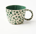 Playful yet wonderfully refined, this charming ceramic mug features bold green spots scattered across a soft cream base. Each organic dot brings a sense of movement and personality to the piece, creating a pattern that feels lively while still beautifully balanced.