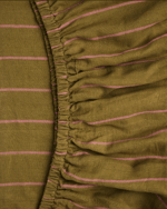 There is something quietly romantic about a bed dressed in beautiful linen, layered softly, inviting you to slow down and linger just a little longer. Our Tapenade Stripe Linen Collection captures that feeling perfectly, a fresh and grounded palette of olive green paired with the gentlest blush pink stripe, reminiscent of early mornings in the garden and long, sun-warmed afternoons.