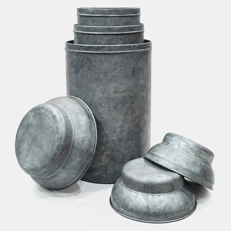 Made from aged zinc, the Chinois cylindrical tin has a softly mottled finish and a neatly fitting lid. Simple, durable, and timeless, it works beautifully as storage, a planter, or a quiet decorative piece. Available in three sizes.